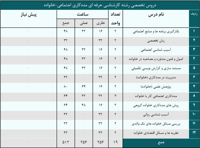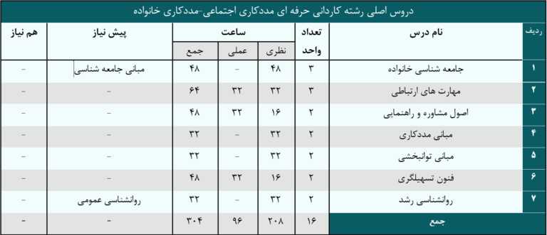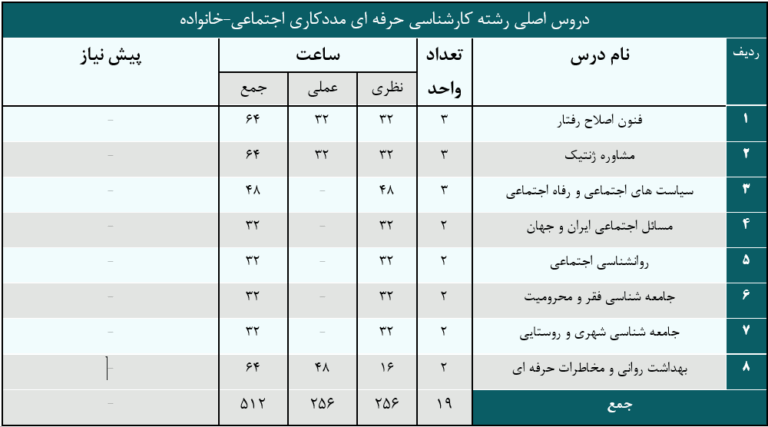 در ادامه میتونی جدول کامل دروس مربوط به مقطع کاردانی و کارشناسی این رشته رو ببینی: